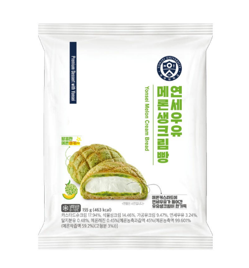 연세우유에서도 메론 생크림빵이 나왔는데, 빵 안에 부드러운 크림이 한가득 들어 있어서 진짜 맛있었어요.